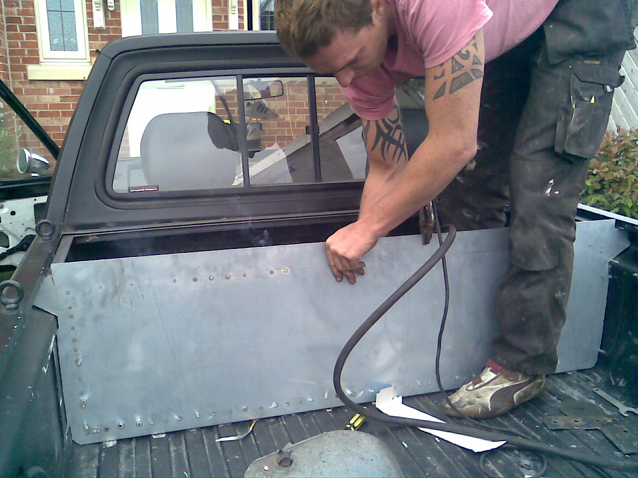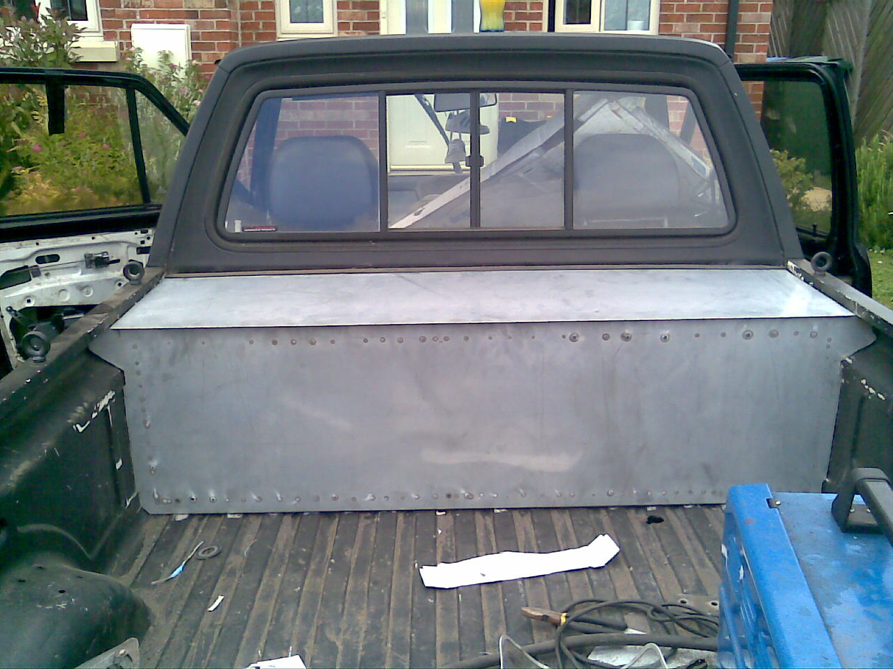 A big thanks to stu after i dragged him up on sunday morning after a hardcore poker night the night before... We went to KP welding (i think thats what it is called? next to mini marquees) and bought some angle iron, and cracked on with building a frame.. Cut the metal for tha panels Poured hammerite on everything Now i can start mounting the good stuff! I am Olly |